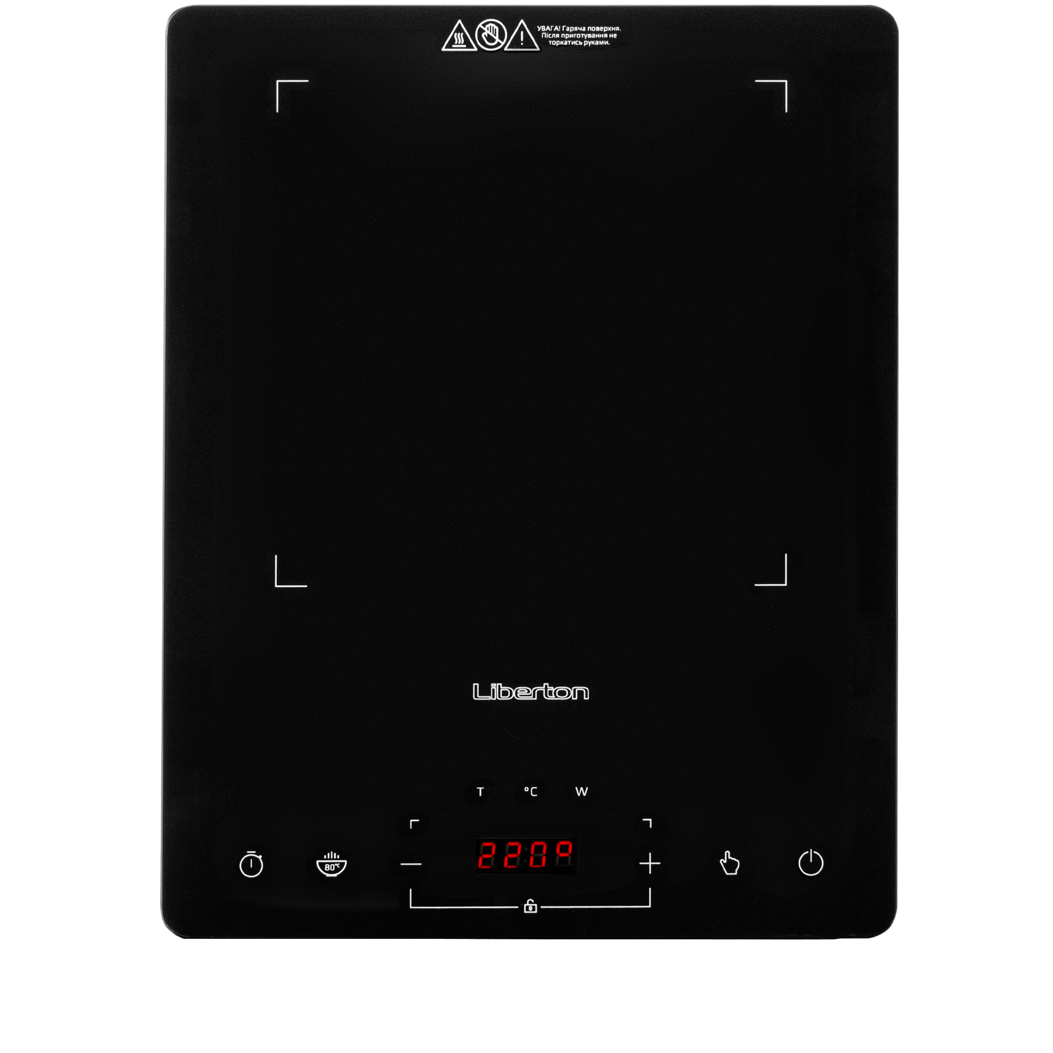 Потужність: 2000 Вт; Тип нагріву: індукційний; Дисплей: LED; Зона нагріву: 1; Рівні потужності: 8; Додаткові функції: таймер, звуковий сигнал, автоматичне виявлення посуду, захист від перегріву і стрибків напруги; Панель управління: сенсорна; Матеріал робочої поверхні: склокераміка; Матеріал корпусу: ABS пластик; Розмір виробу: 29х37х4 см; Колір: чорний.