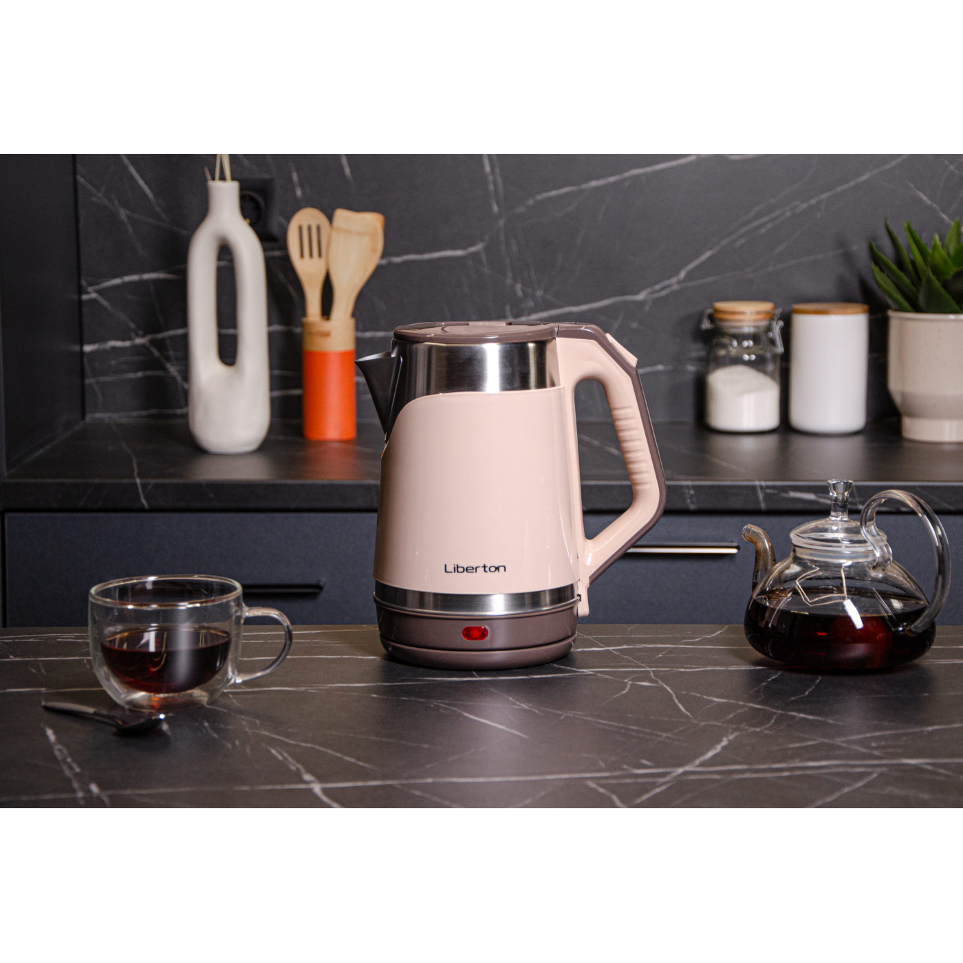 Потужність: 1500 Вт; Об'єм: 1,8 л; Нагрівальний елемент: диск з нержавіючої сталі; Комплектація: поворотна база на 360 град., автовідключення, внутрішня шкала рівня води, індикатор роботи; Розмір виробу: 24,2х24,8х15 см; Корпус: подвійна стінка (нержавіюча сталь+пластик); Колір: бежевий+нерж.