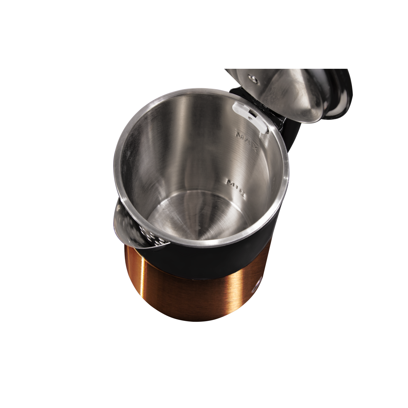 Потужність: 1500 Вт; Об'єм: 1,8 л; Нагрівальний елемент: диск з нержавіючої сталі; Комплектація: поворотна база на 360 град., автовідключення, внутрішня шкала рівня води, індикатор роботи; Розмір виробу: 15,5х21,5х25,5 см; Особливості: безшовна колба; Корпус: подвійна стінка (нержавіюча сталь+пластик); Колір: золотий.