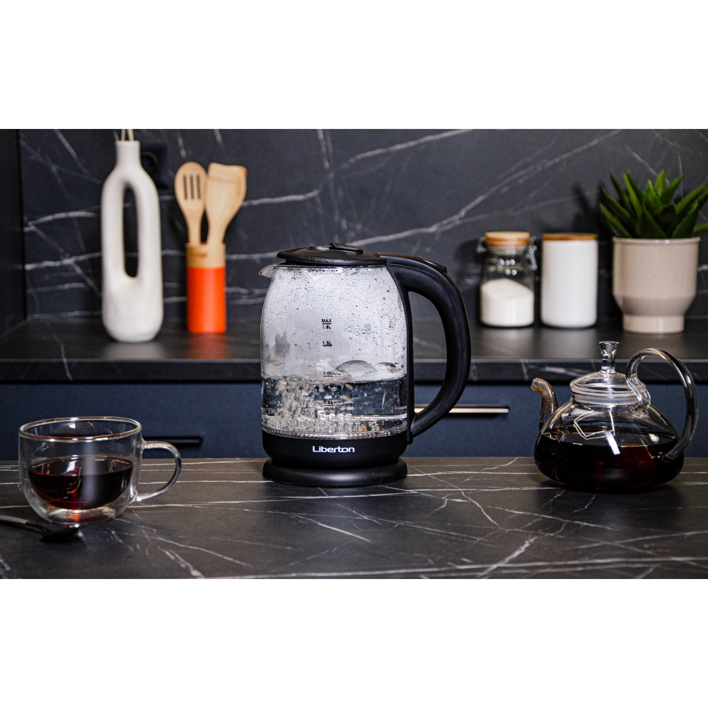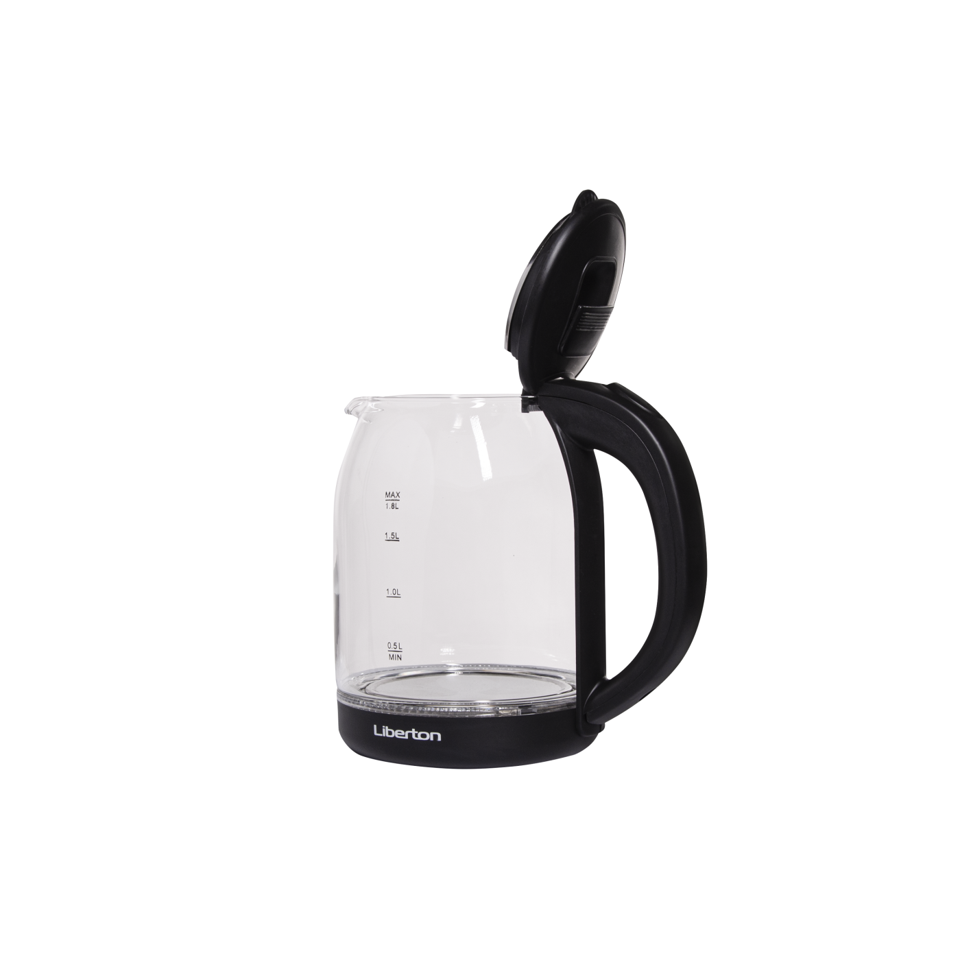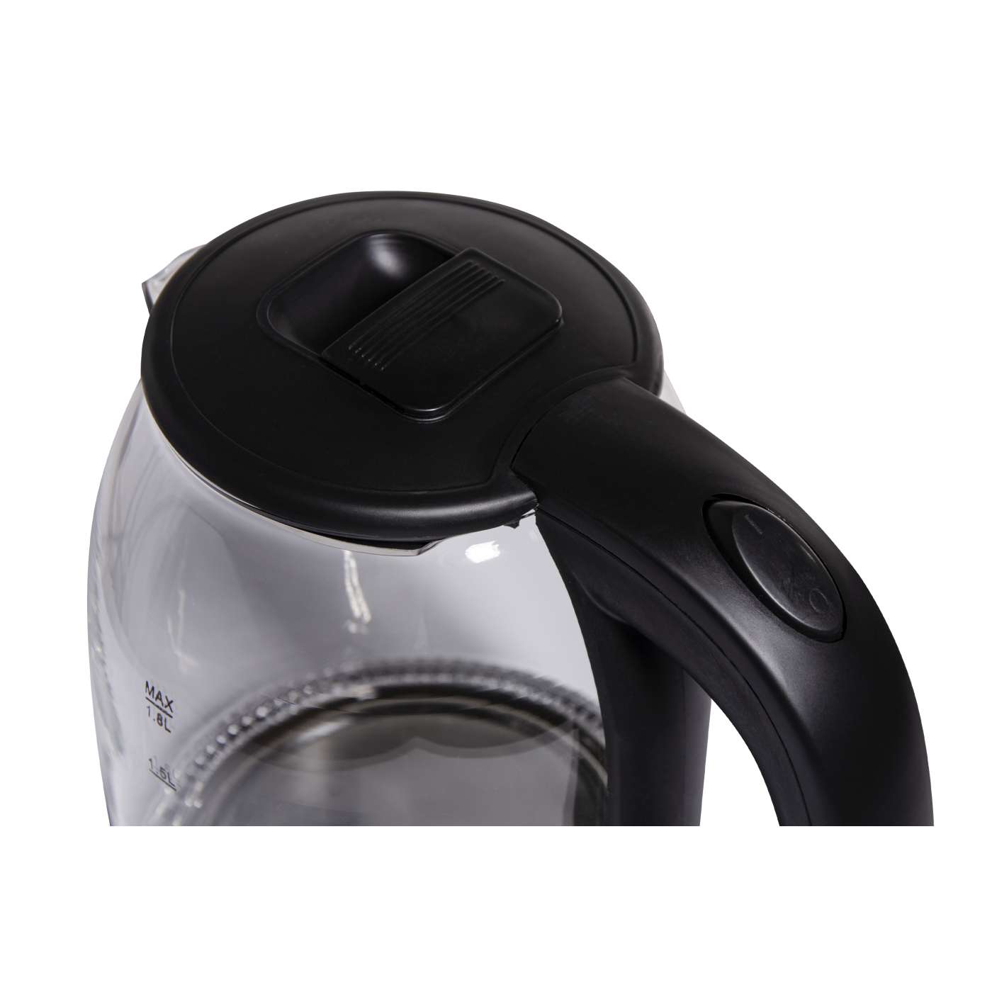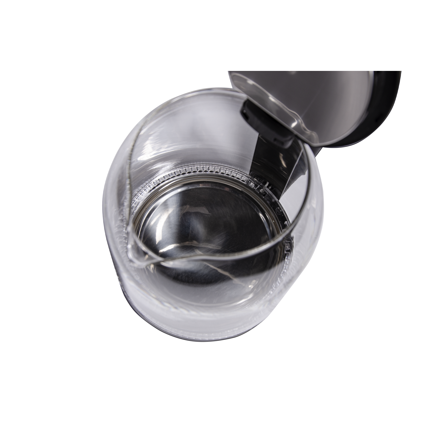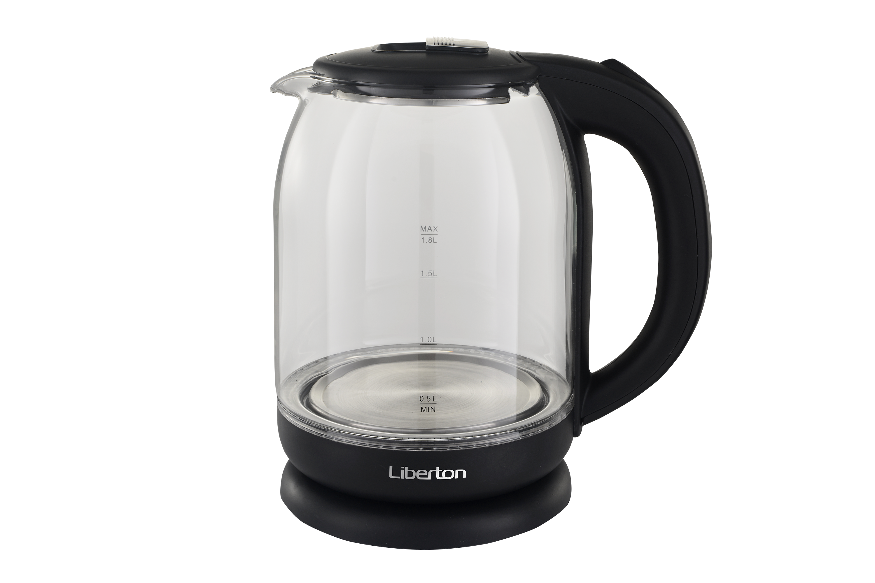 Потужність: 1500 Вт; Об'єм: 1,8 л; Нагрівальний елемент: диск з нержавіючої сталі; Комплектація: поворотна база на 360 град., автовідключення, шкала рівня води, індикатор роботи, мідний кабель живлення; Розмір виробу: 20,5х16,3х23 см; Матеріал корпусу: скло+пластик; Колір: чорний.