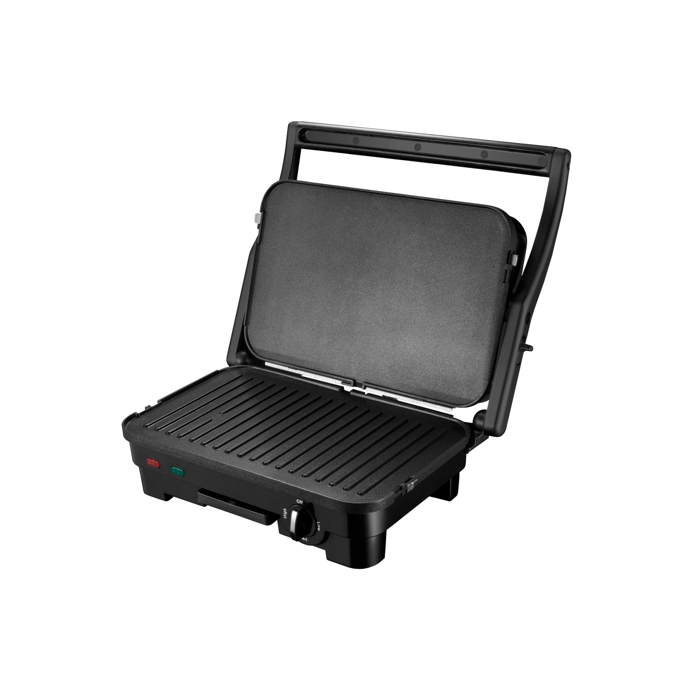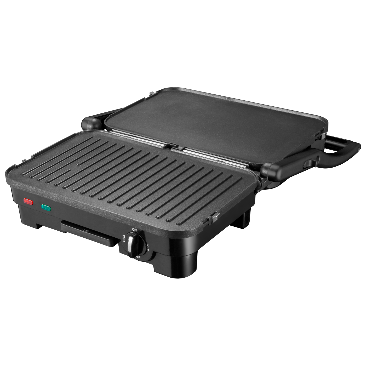 Потужність: 1800 Вт; Тип: контактний; Розмір робочої поверхні: 29х18,8 см; Знімна двостороння пластина (гриль/пласка); Індикатор живлення; Індикатор готовності їжі; Регулятор температури; Система блокування; Термоізольована ручка; Аксесуари: скребок для чищення, піддон для жиру; Покриття пластин: антипригарне; Відкривання: 180 град.; Матеріал корпусу: бакеліт+нержавіюча сталь; Розмір виробу: 33,2х28,3х14,2 см; Колір: чорний+нерж.