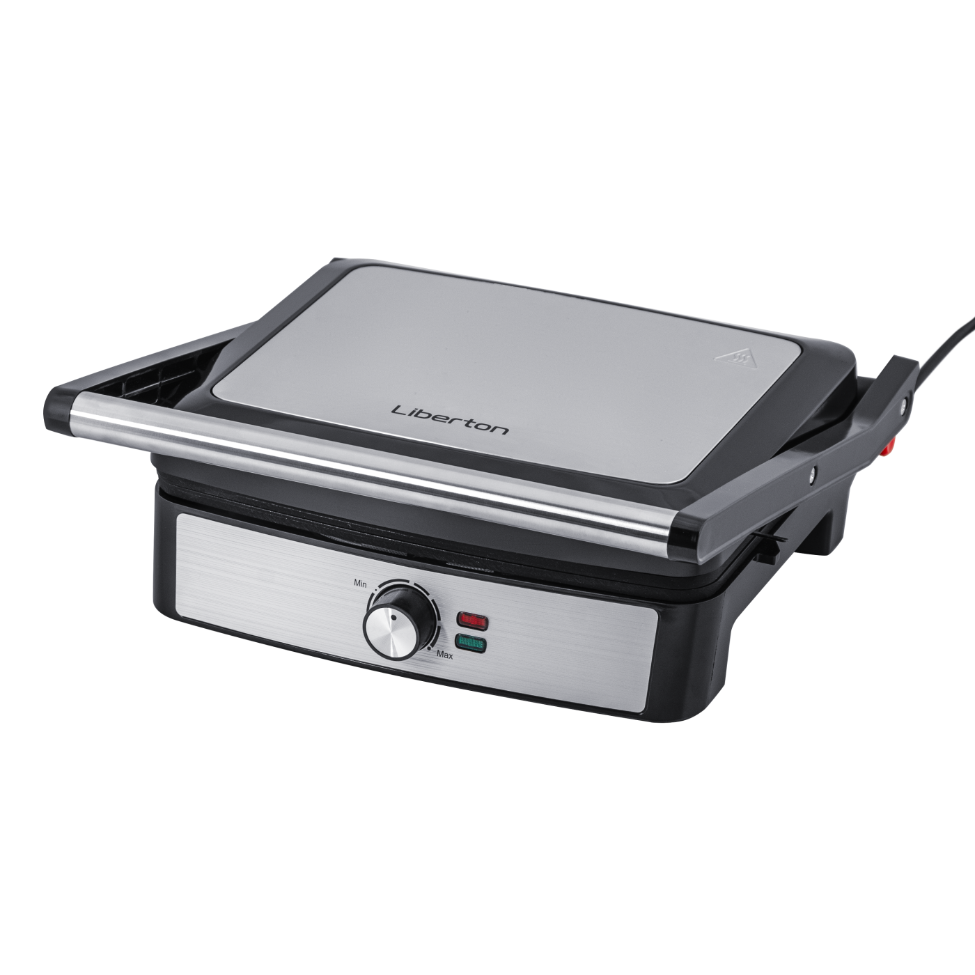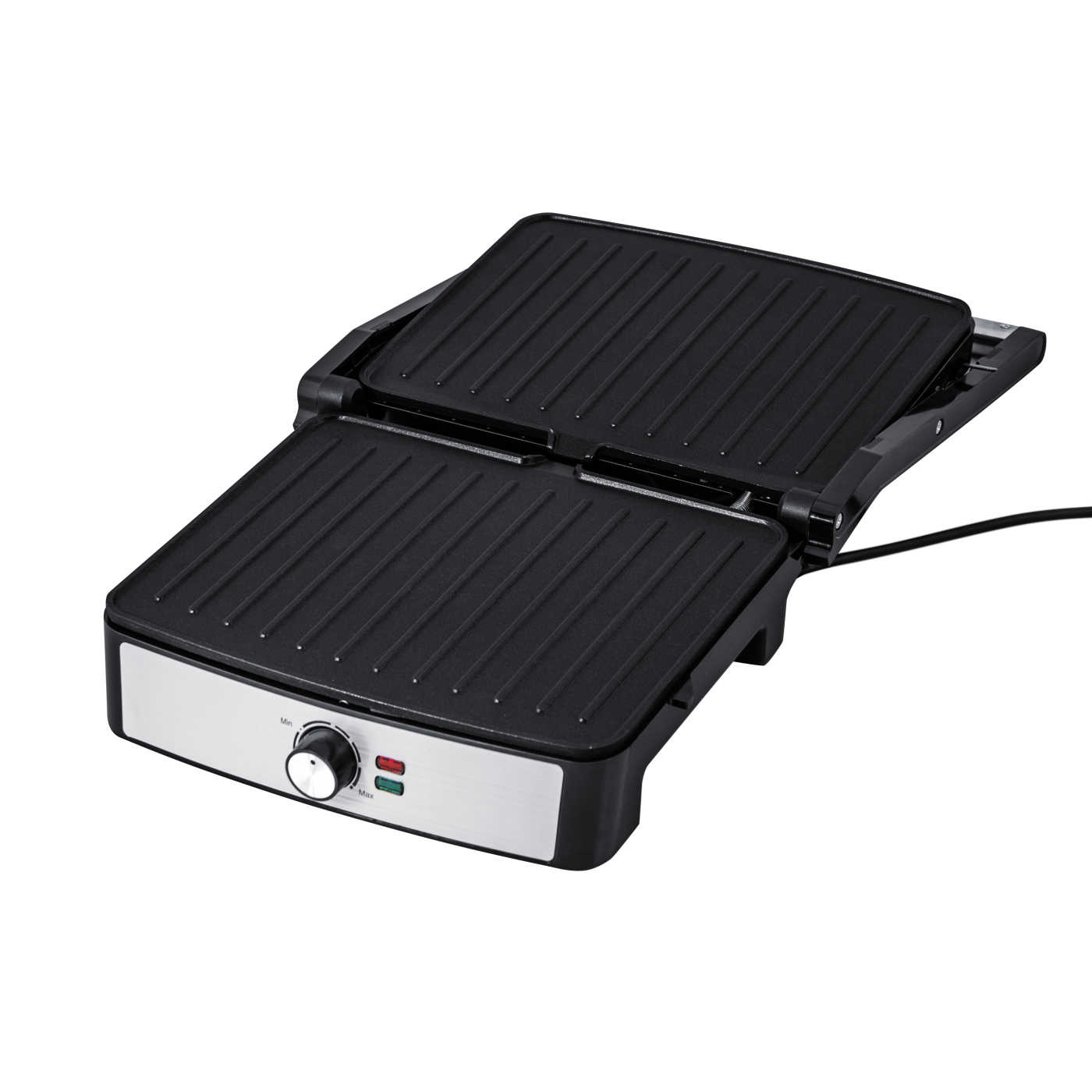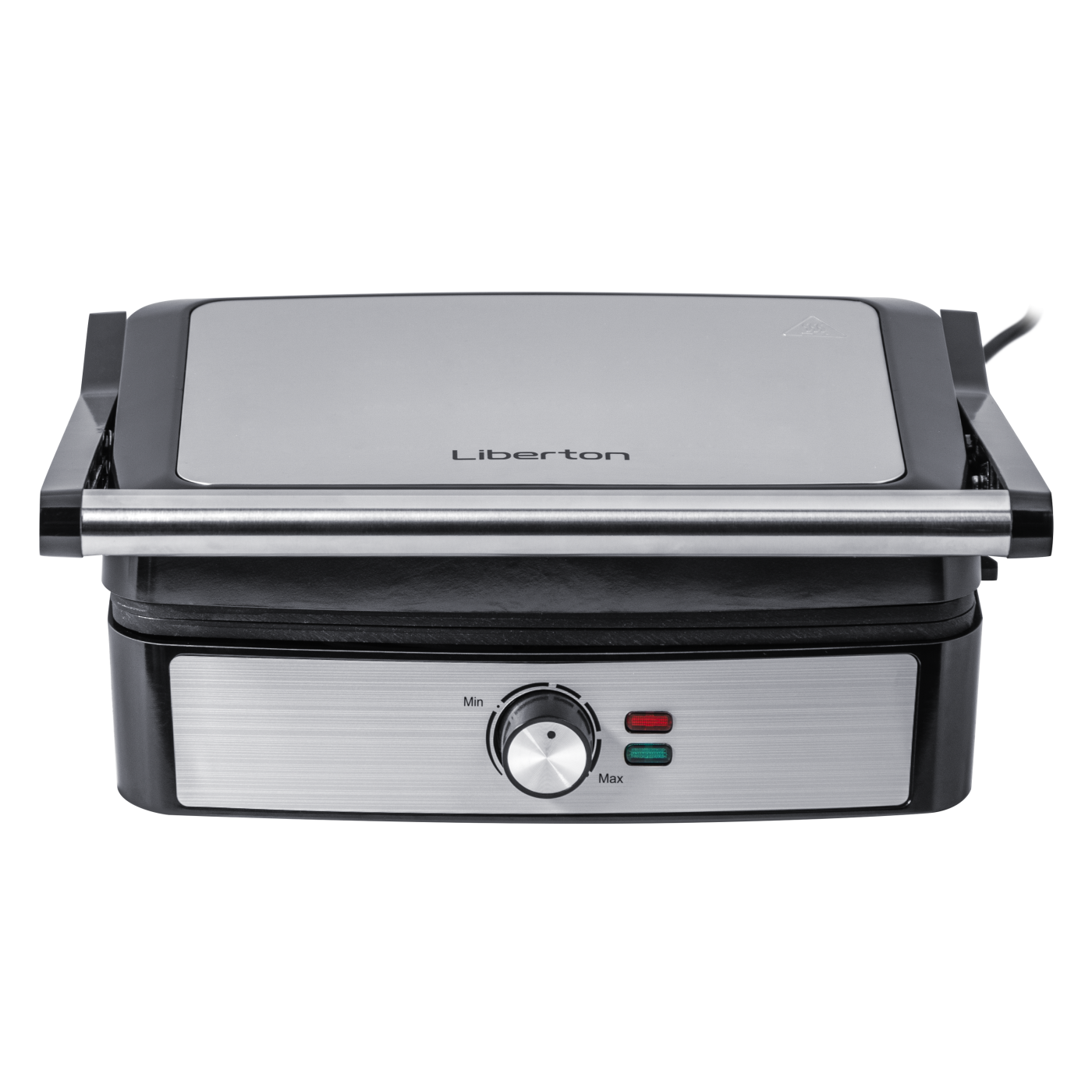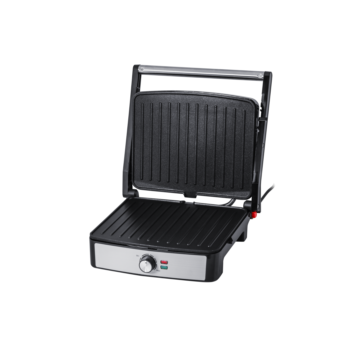 Потужність: 2200 Вт; Тип: контактний; Розмір робочої поверхні: 29х23 см; Індикатор живлення; Індикатор готовності їжі; Регулятор температури; Система блокування; Термоізольована ручка; Аксесуари: скребок для чищення, піддон для жиру; Покриття пластин: антипригарне; Відкривання: 180 град.; Матеріал корпусу: бакеліт+нержавіюча сталь; Розмір виробу: 32,8х13,3х32,3 см; Колір: чорний+нерж.