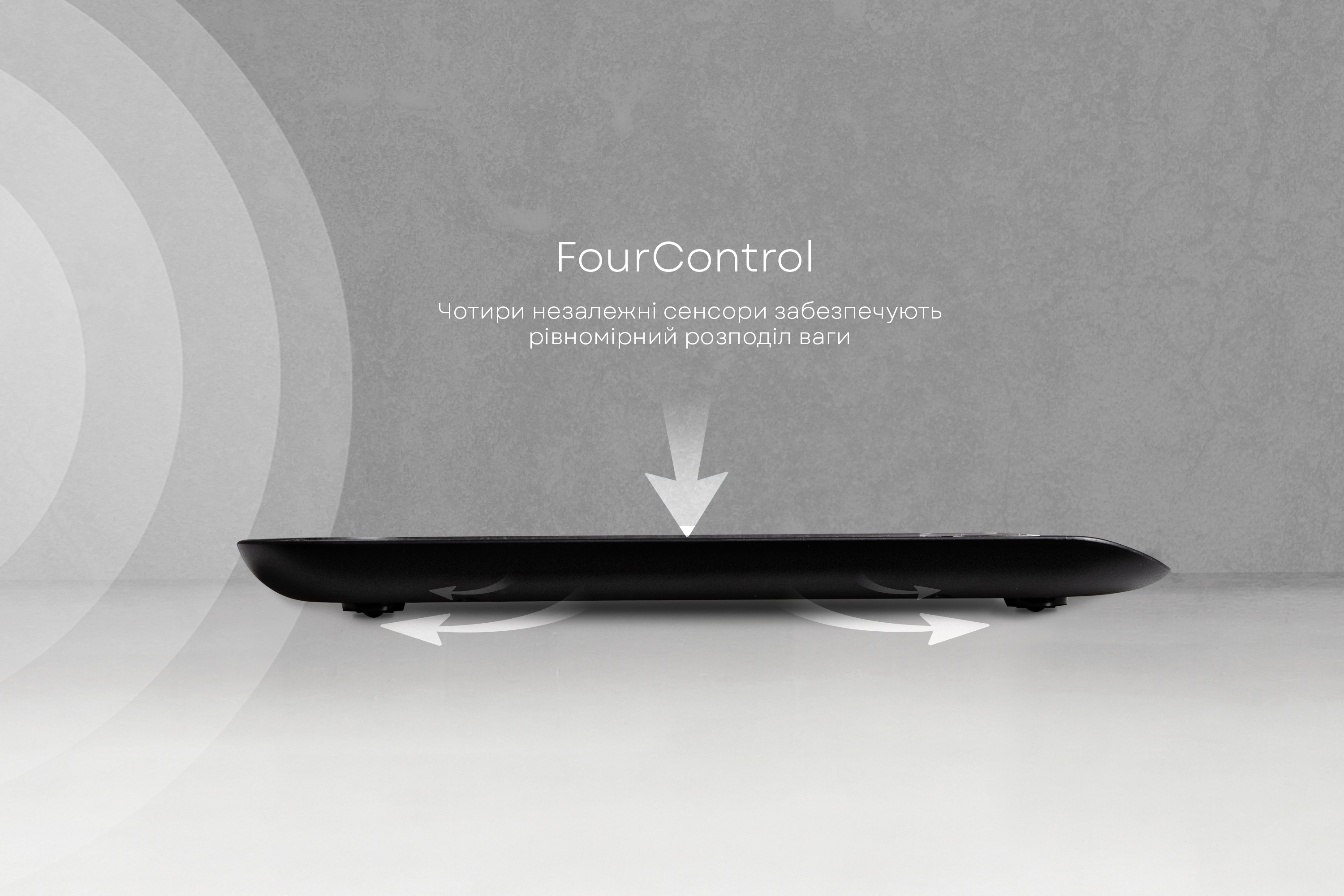 Чотири незалежні сенсори забеспечують рівномірний розподіл ваги, гарантуючи точність вимірювання до граму.