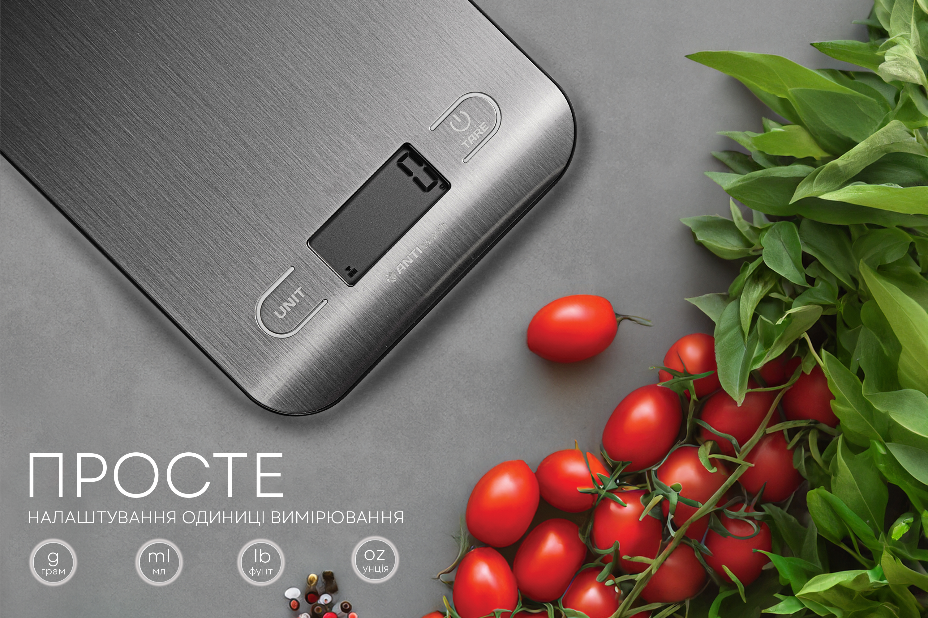 • Функція обнулення тари: Виключає вагу контейнера для точного вимірювання інгредієнтів.