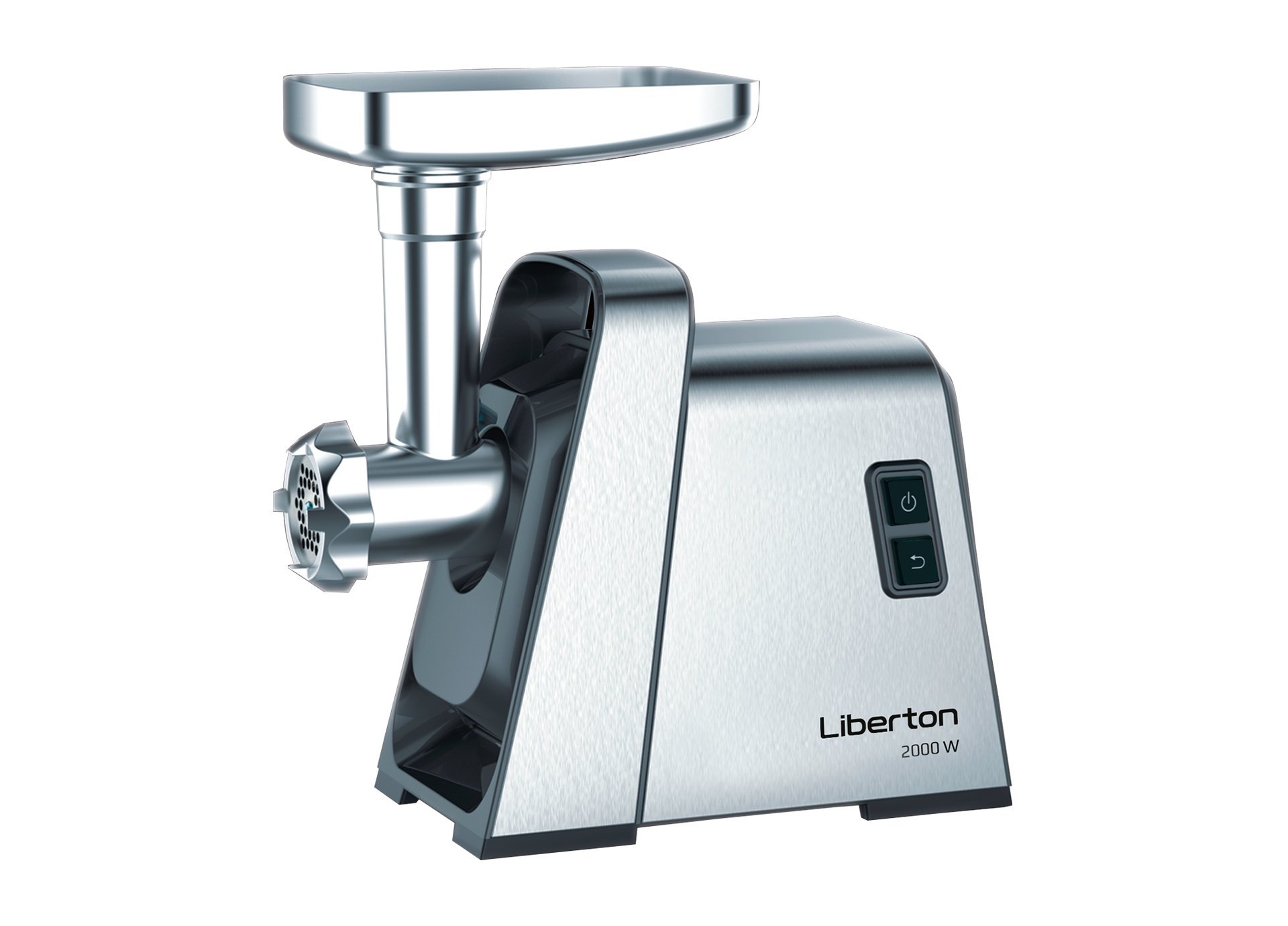 Потужність: 2000 Вт (при заклинюванні); Продуктивність: 1,4 кг/хв.; Функції: реверс, захист від перегріву; Аксесуари: 3 диска для помелу (3 мм/5 мм/7 мм), овочетерка (3 шт.), овочерізка (1 шт.), насадка для ковбас, насадка для кебе, соковитискач для томатів, штовхач, металевий лоток; Матеріал шнека: нержавіюча сталь; Матеріал корпусу: нержавіюча сталь; Розмір виробу: 27,9х25,8х15,5 см; Колір: нерж+чорний.