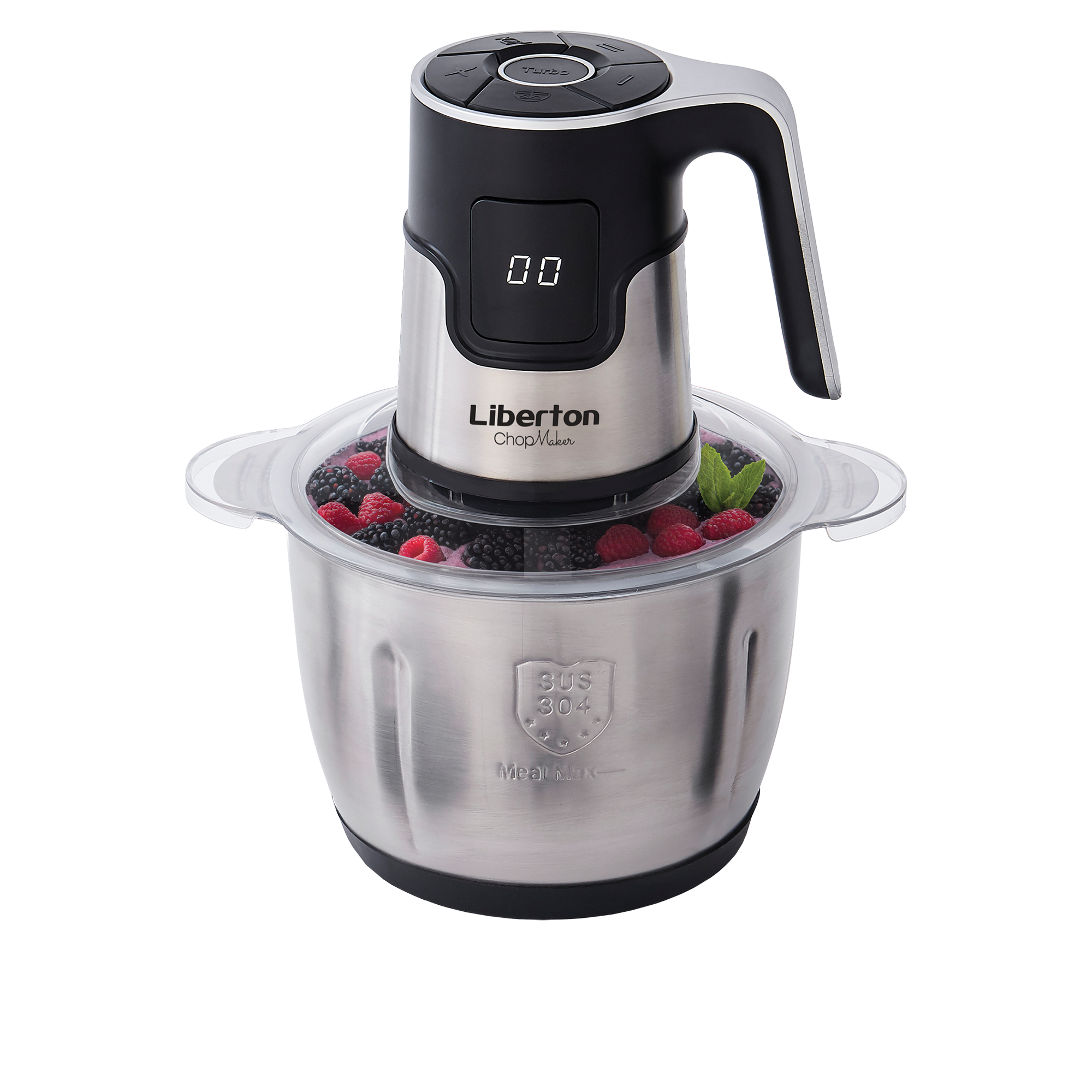 Потужність: 500 Вт; Тип: стаціонарний; Кількість швидкостей: 6; Об'єм чаші, л.: 3; Ніж: нержавіюча сталь; Матеріал корпусу: нерж.сталь+пластик; Особливості: електронний дисплей, 100% мідний двигун, режим TURBO, чаша з нержавіючої сталі SUS 304, антиковзаюче дно; Аксесуари: Лопатка для чищення; Розмір виробу, см: 25х29.