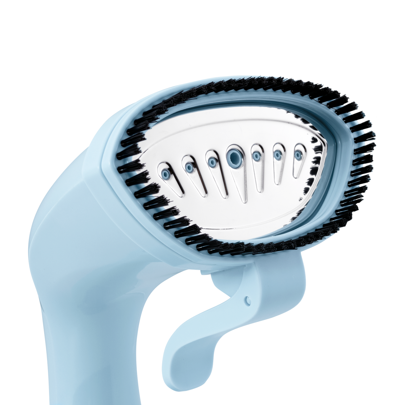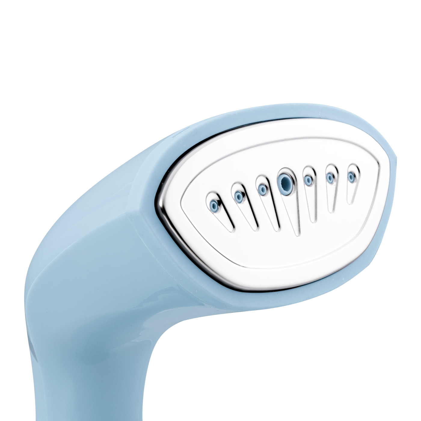 Потужність, Вт: 1500; Об'єм резервуару, мл: 280; Рівні подачі пари, шт.: 1; Потік пари, г/хв: 25; Матеріал підошви: нержавіюча сталь; Горизонтальне/вертикальне відпарювання: так; Опції: антикрапля, LED-дисплей, автопара, автовідключення; Комплектація: стандартна щітка, кліпса для брюк, мірна склянка; Розмір виробу, см: 14х11,5х27,5; Колір: блакитний.